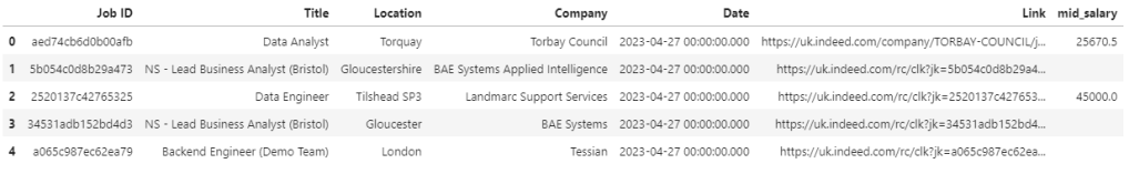 df = pd.DataFrame(data=data, columns=['Country', 'Job ID', 'Title', 'Location', 'Company', 'Date_str', 'Date', 'Link', 'Salary', 'Description'])