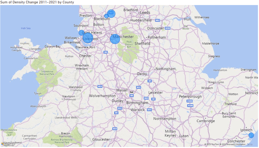 Interesting that the two most expensive counties have also experienced the greatest reduction in population density in the last decade. The population size of Kensington and Chelsea has decreased by 9.6%, from around 158,600 in 2011 to 143,400 in 2021. A quick google search revealed that “Some have suggested that the borough’s declining population could be the result of its expensive housing, with property prices rising by almost 14% in the past year, according to data released by the real estate firm, Rightmove.”