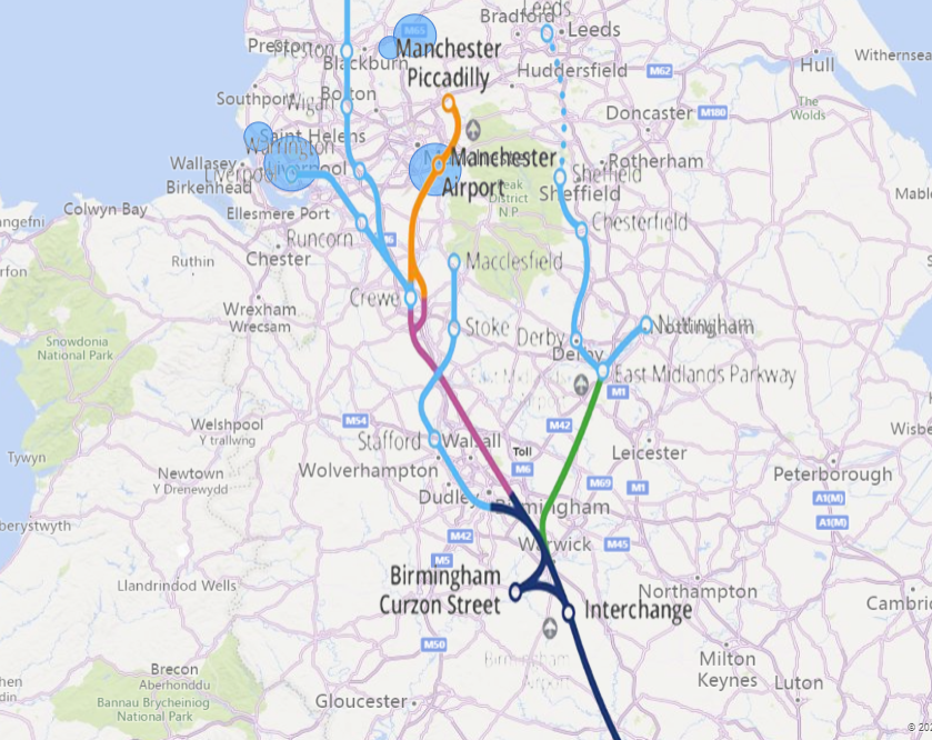 Superimposing the HS2 path onto the Power BI visualisation map suggests that this could indeed be the case. I wondered if the house prices reflected this: